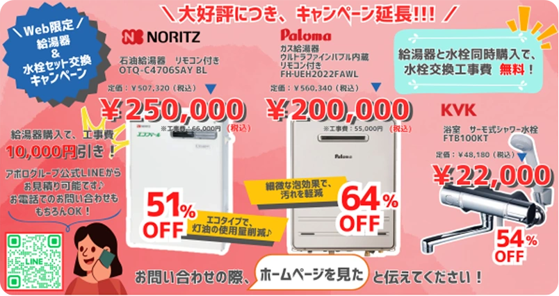 さまざまなメーカーの給湯器から、お客さまにあった1台を!